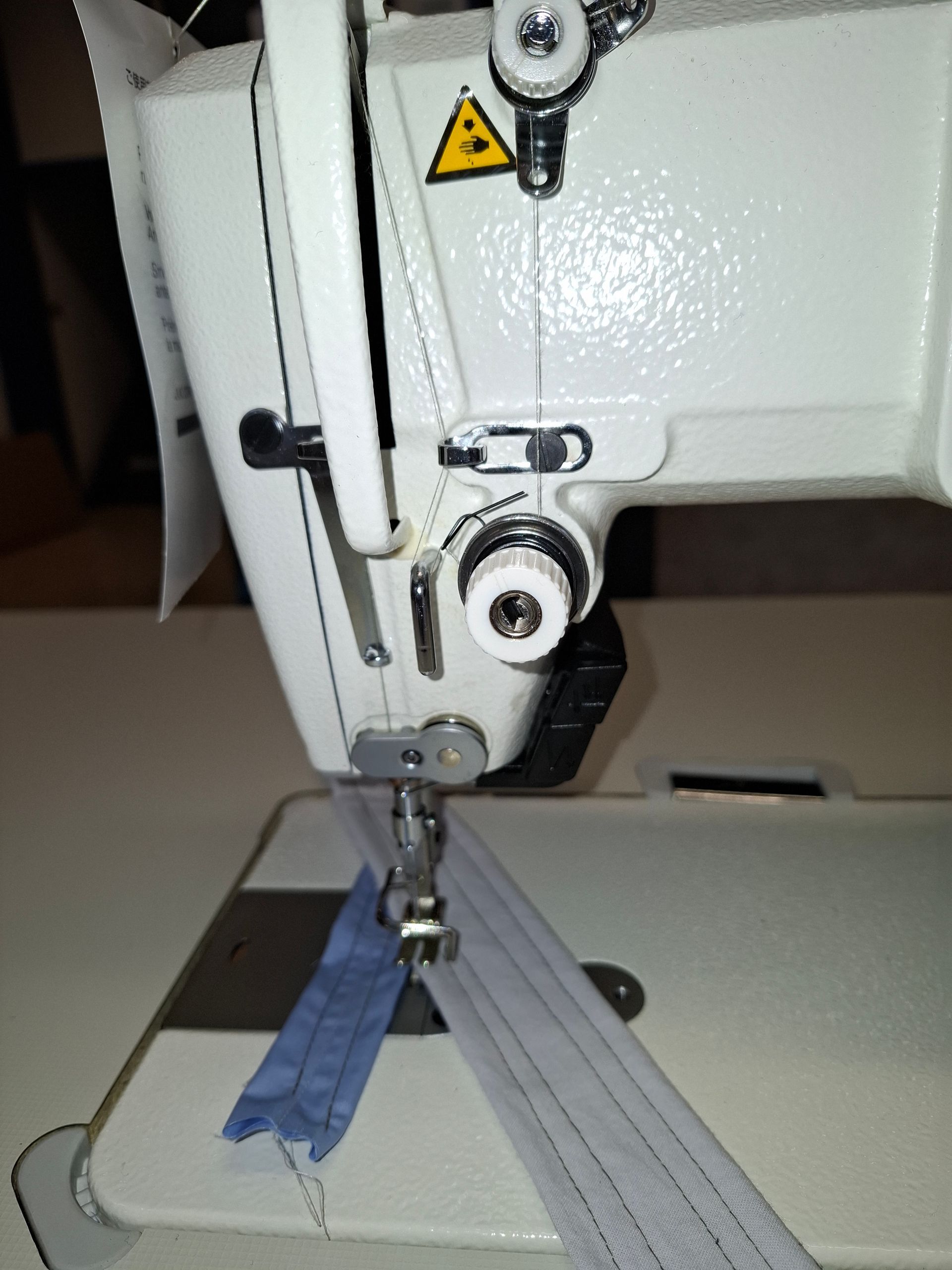 La macchina è completa di rasafilo automatico e scartafilo. La regolazione della tensione del filo è manuale.